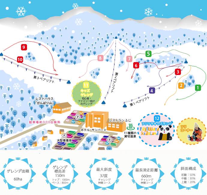 Plan des pistes Minakami Kogen Fujiwara Saison 2025/2026