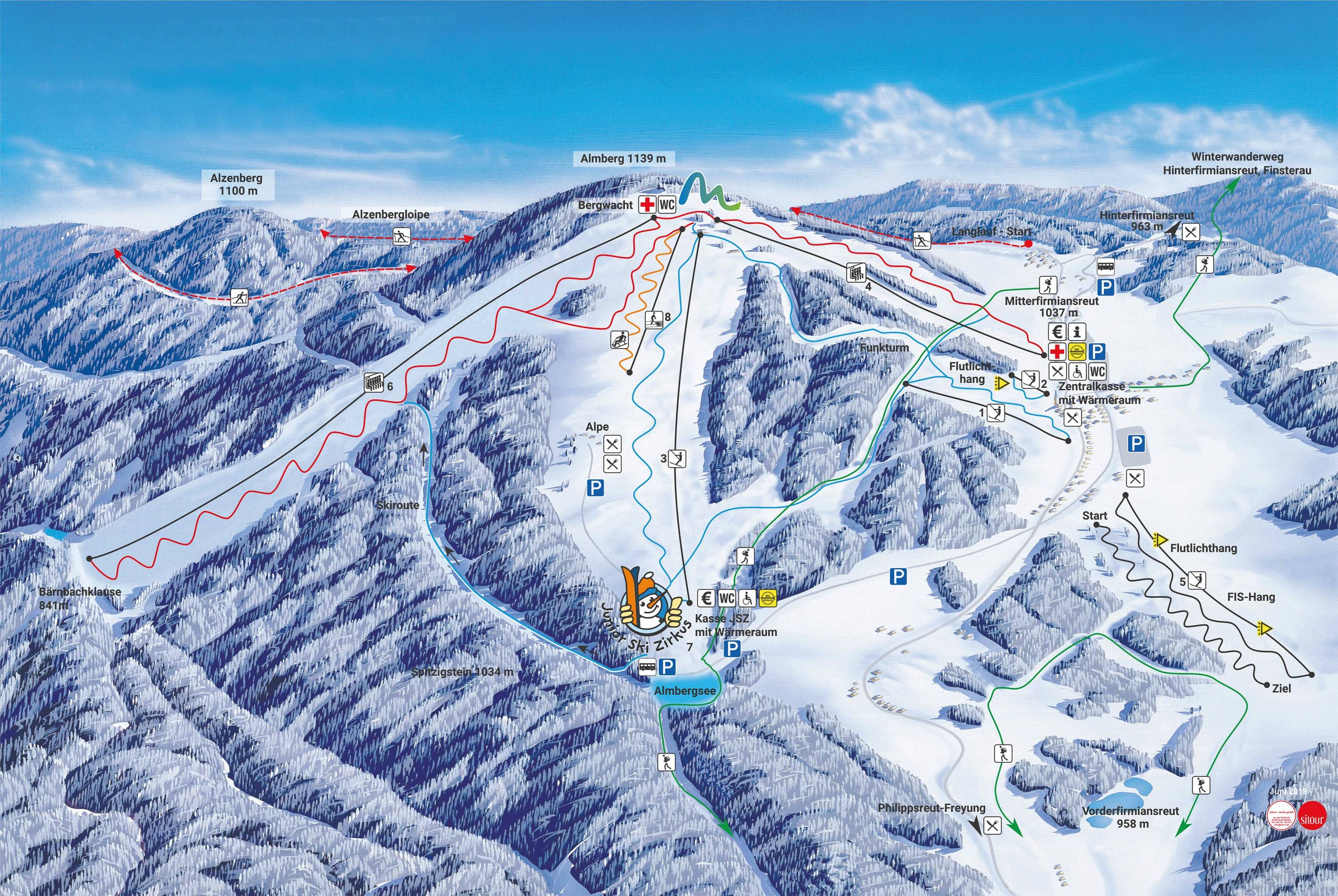 Le plan des pistes est clair, lisible et détaillé. La piste de liaison vers le téléski Kißlinger pourrait être ajoutée, ainsi qu'une indication précisant qu'il faut marcher environ 200 m pour le retour.