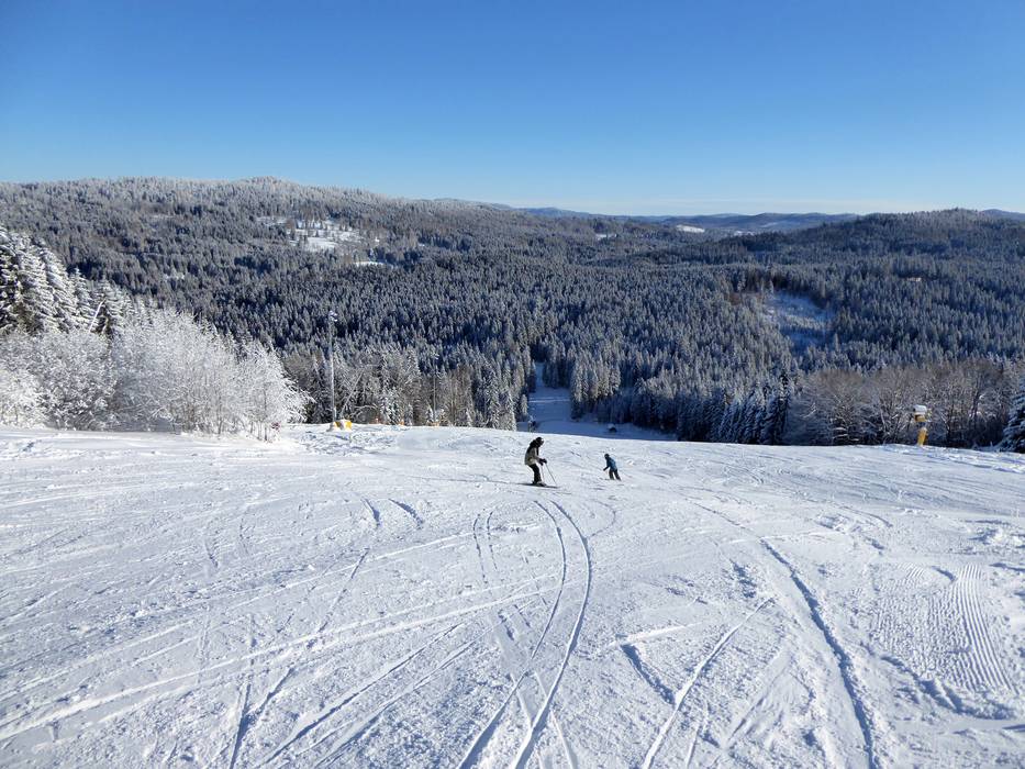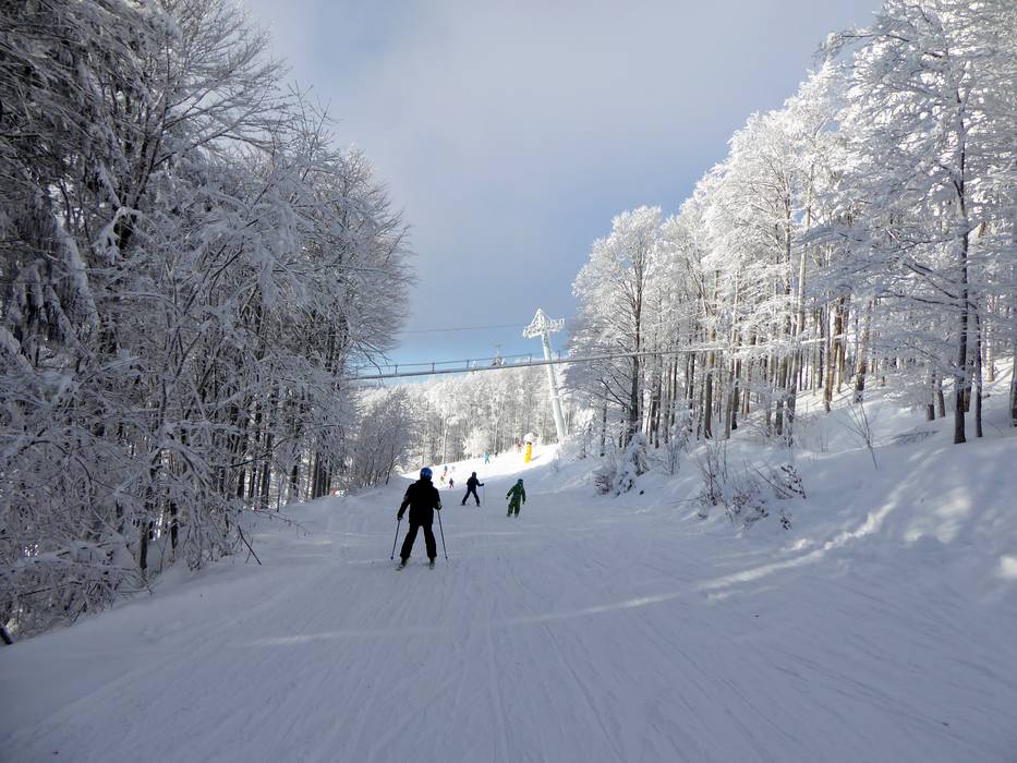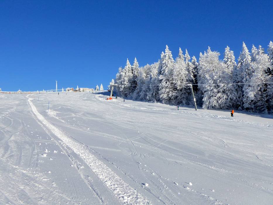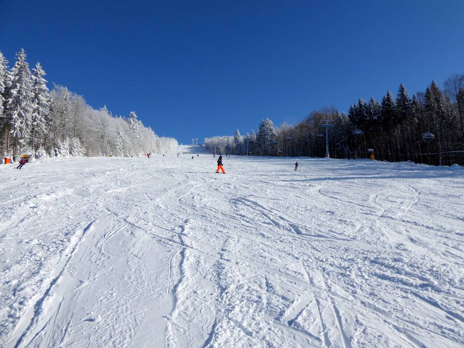 La piste de difficulté moyenne descend du sommet parallèlement au télésiège jusqu'à la station de la vallée.