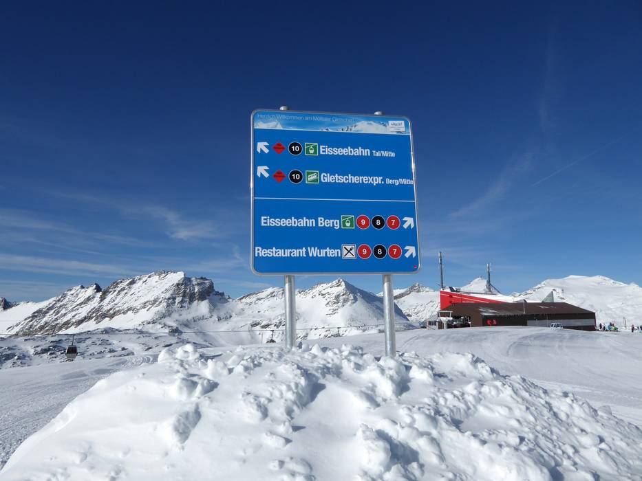 Indications de directions (plans, panneaux informatifs, signalisation) et sécurité sur le domaine skiable Mölltaler Gletscher (Glacier de Mölltal) Plan des pistes et cartes des alentours