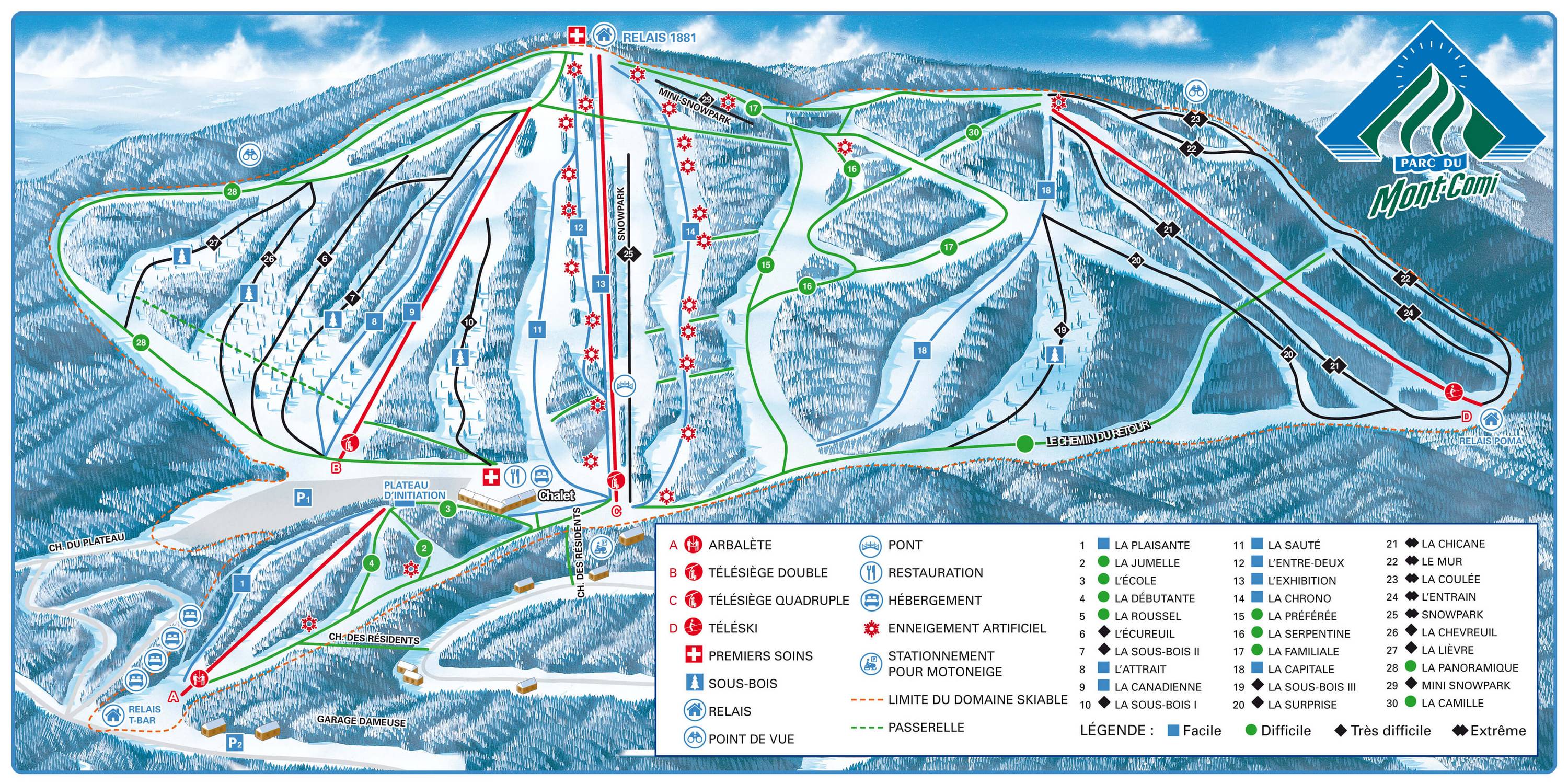 Plan des pistes Mont Comi Saison 2024/2025