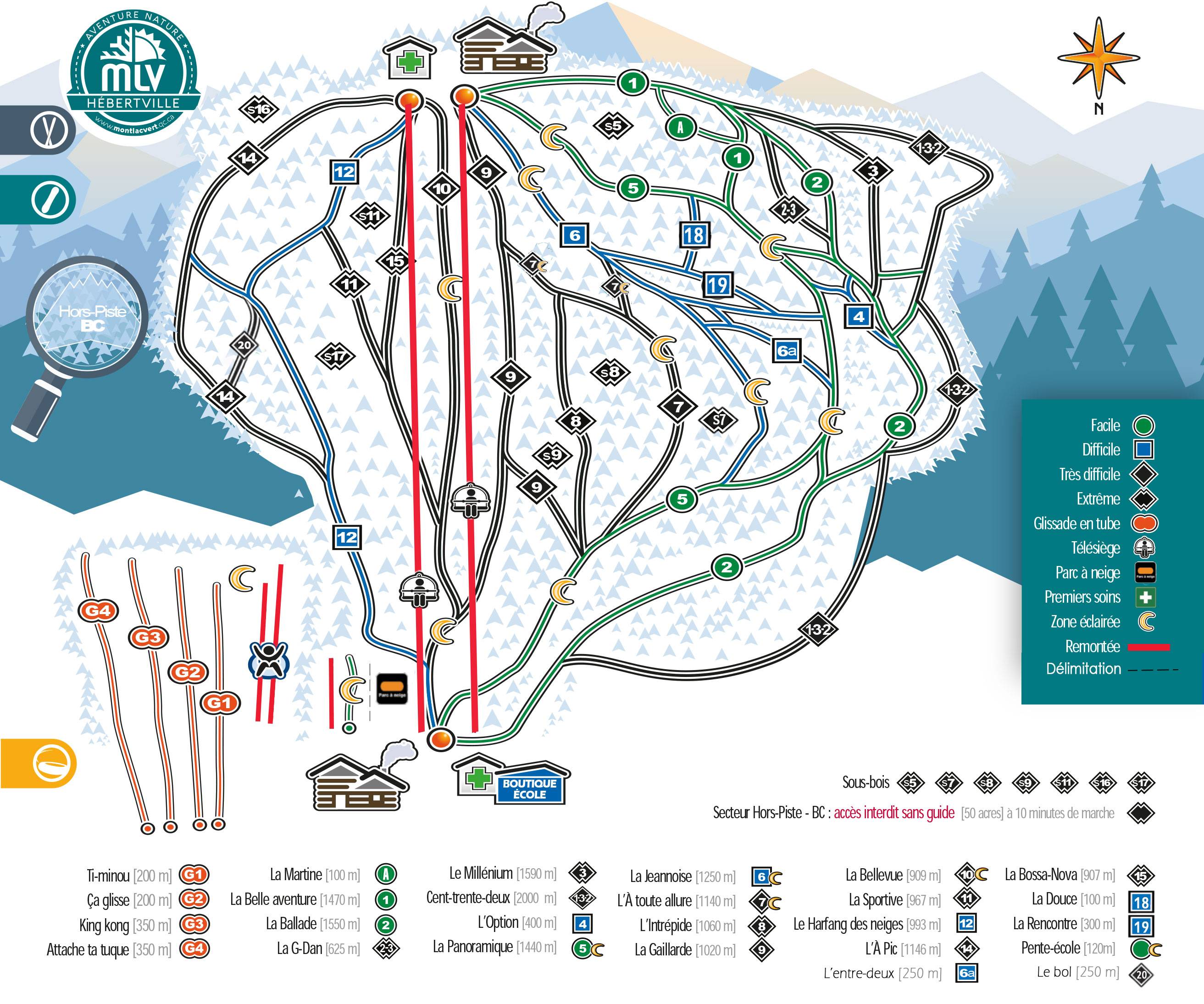 Plan des pistes Mont Lac-Vert – Hébertville Saison 2025/2026