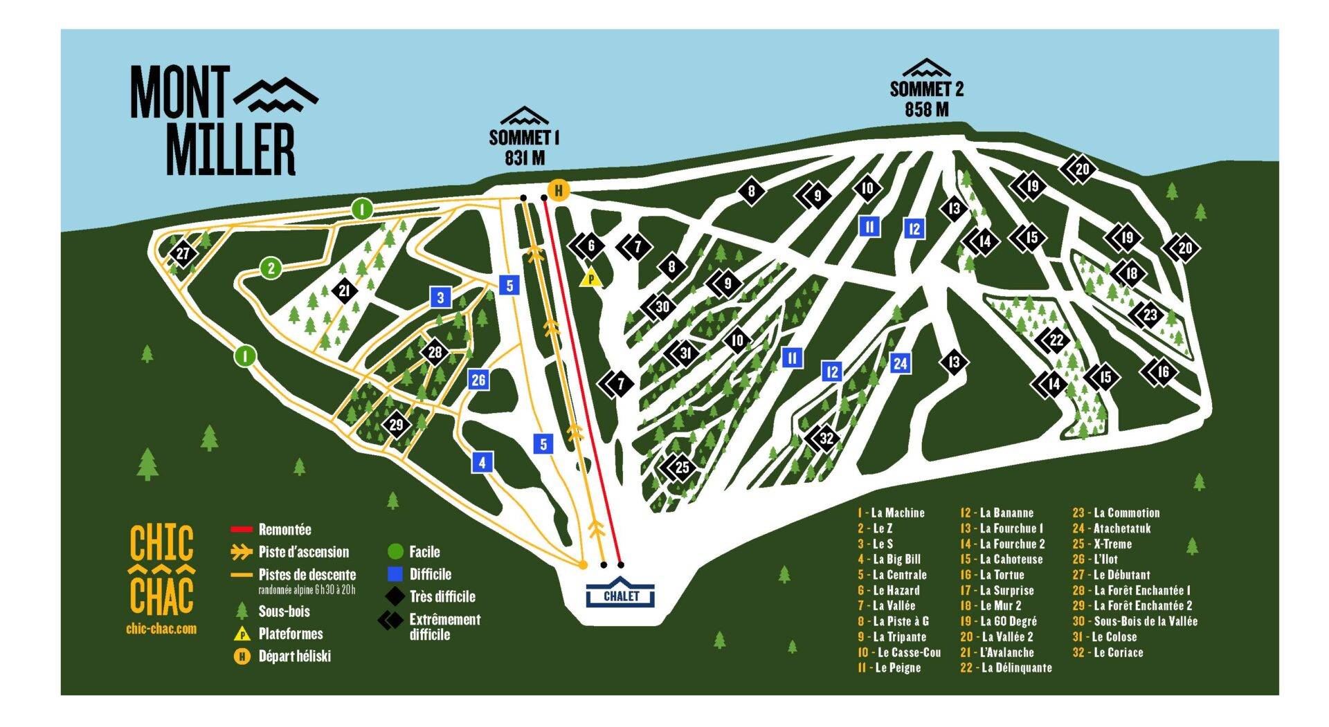 Plan des pistes Mont Miller Saison 2024/2025