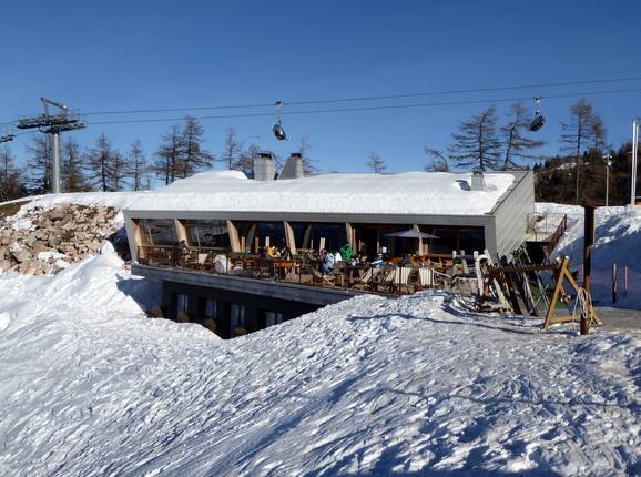 Dans tout le domaine skiable de Monte Bondone, des possibilités de restauration sont réparties. Au sommet, le "Bar Al Sole" vous attend avec une vue magnifique et au "Rocce Rosse", vous pourrez savourer des délices culinaires. Des spécialités régionales y sont principalement servies.