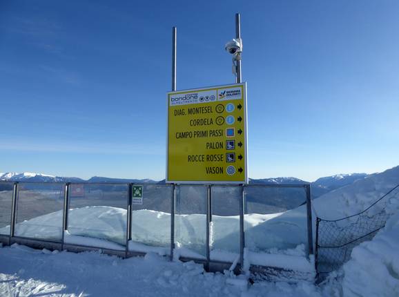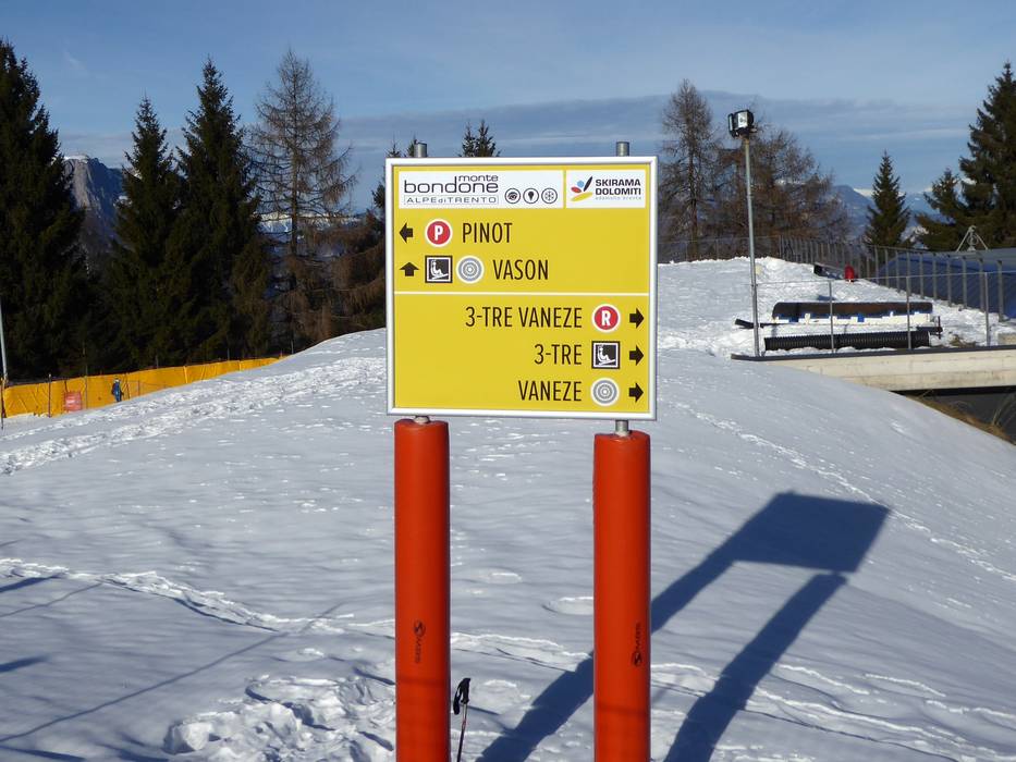 Indications de directions (plans, panneaux informatifs, signalisation) et sécurité sur le domaine skiable Monte Bondone