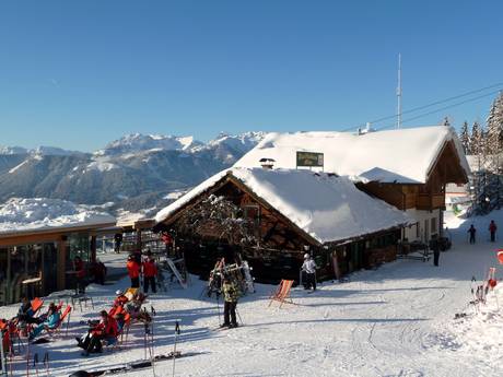 La cabane la plus authentique du domaine skiable, située sur la piste de descente vers la vallée, propose des spécialités régionales. Sur la terrasse ensoleillée, vous pouvez terminer votre journée de ski en toute détente.