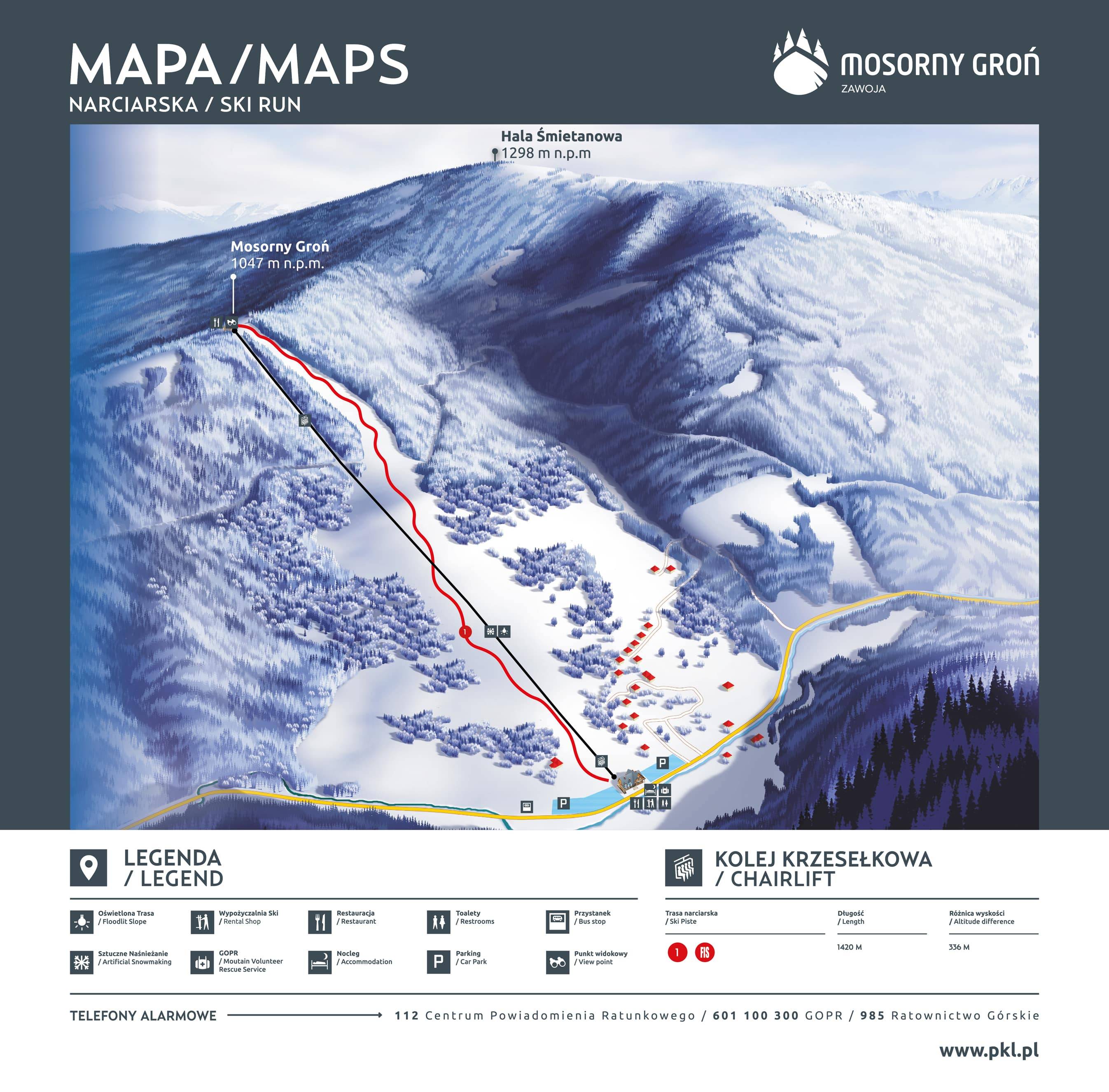 Plan des pistes Mosorny Groń Saison 2024/2025