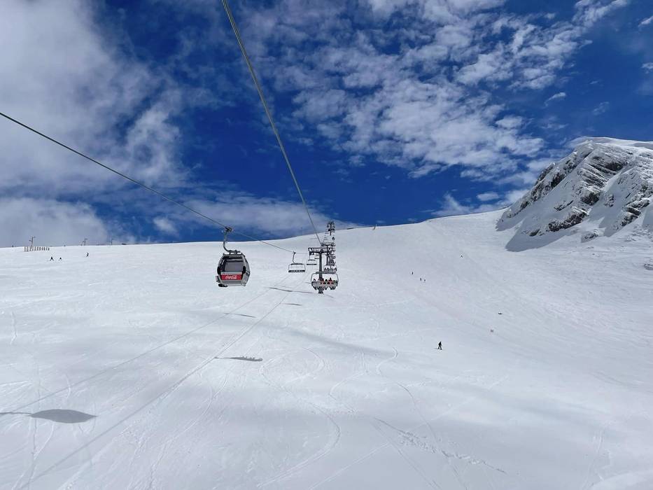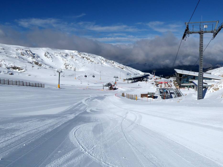 Large piste avec télémix Bacchus Télécabine combinée Heniokos avec panorama Vue jusqu’au massif du Kyllini, le lieu de… Église du Prophète Élie à la station supérieure… Télécabine combinée (8 cabines et 6 sièges)…