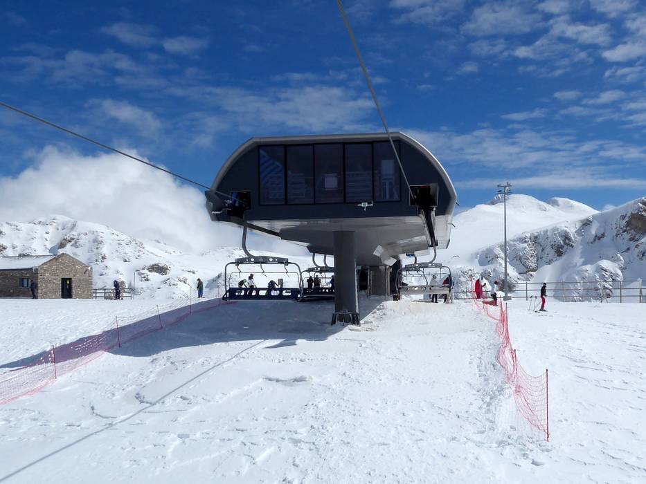 Téléphérique monocâble composé de sièges à 6 places et de cabines à 8 places