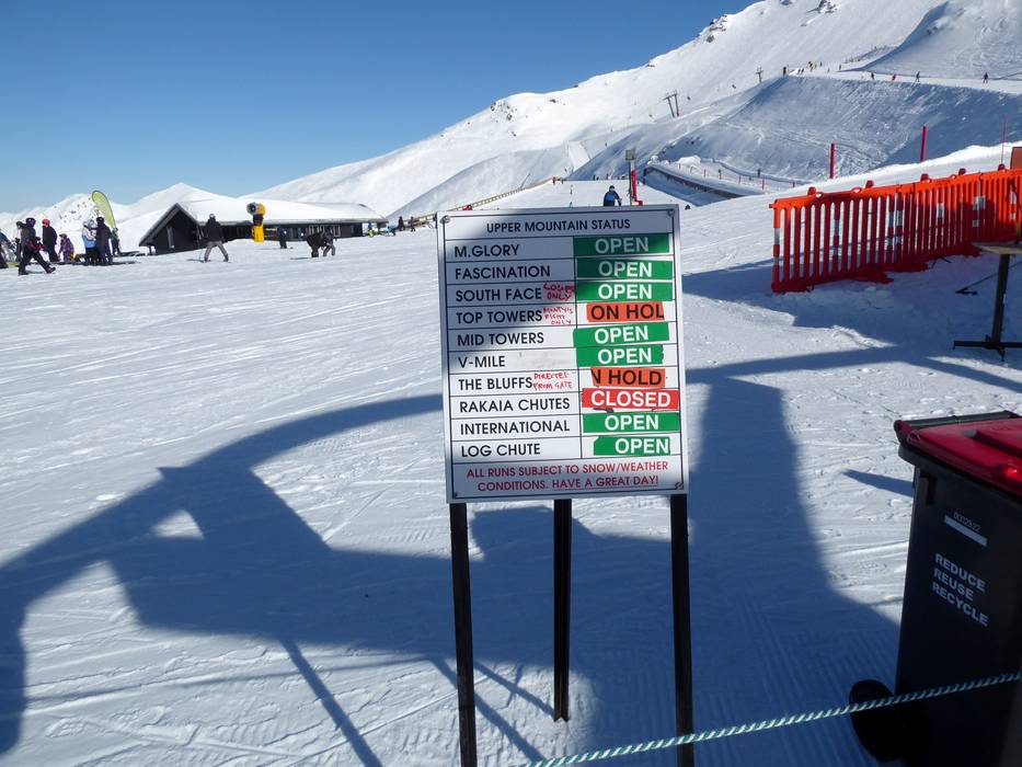 Indications de directions (plans, panneaux informatifs, signalisation) et sécurité sur le domaine skiable Mt. Hutt