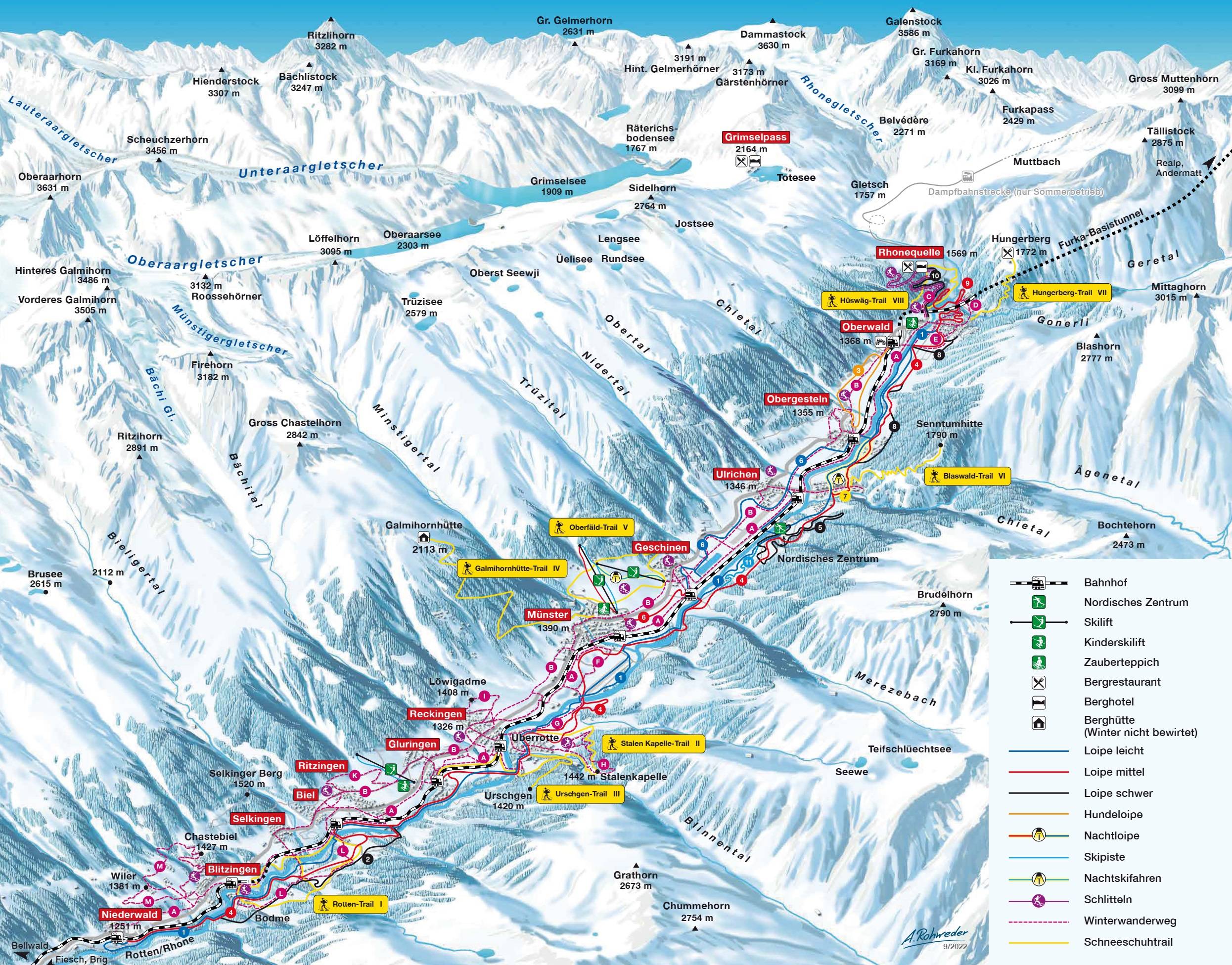 Plan des pistes Goms & Münster-Geschinen Saison 2024/2025