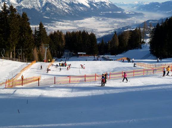 Les débutants se sentent très à l’aise sur les pistes faciles de l’Almboden. La zone délimitée est desservie par un téléski à assiettes et un tapis roulant couvert, et se trouve juste à côté de la station supérieure de la Muttereralm Bahn, qui part de Mutters. La descente vers la vallée jusqu’à Mutters convient également très bien aux débutants. La descente vers la vallée jusqu’à Götzens est de difficulté moyenne et n’est pas recommandée aux débutants absolus.