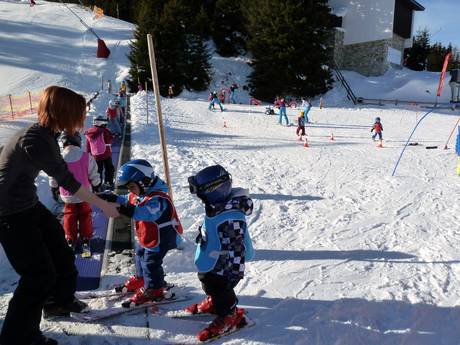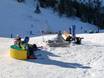 Petit espace enfants à la station supérieure du Götzner-Bahn avec tapis magique ainsi que des piquets et arceaux