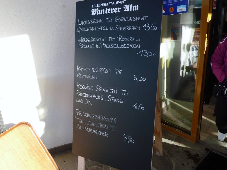 Au cœur du domaine skiable se trouve le restaurant recommandé Muttereralm. D'autres possibilités de restauration sont le Gasthof Nockhof sur la descente vers la vallée en direction de Mutters ainsi que des bars aux deux stations de départ.