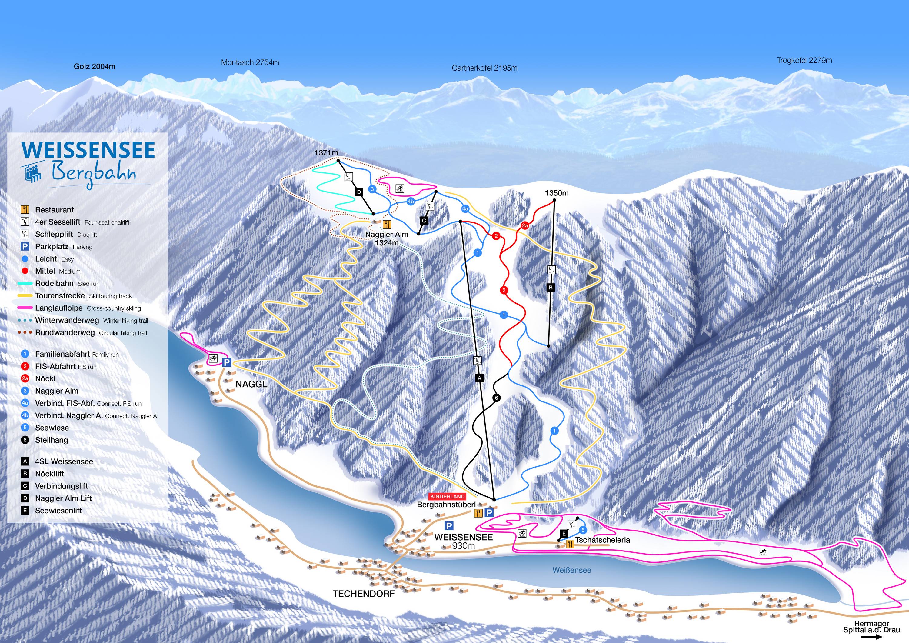 Techendorf (1 km), Weissensee (1,5 km), Naggl (3,3 km) Communes près du domaine skiable