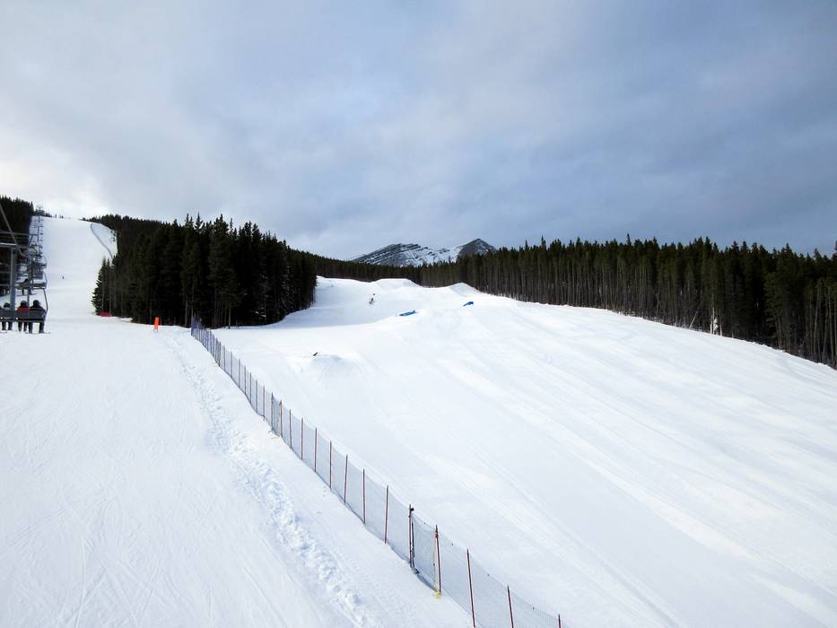 Le domaine skiable de Nakiska propose un beau snowpark sur la piste Elbow Trail.