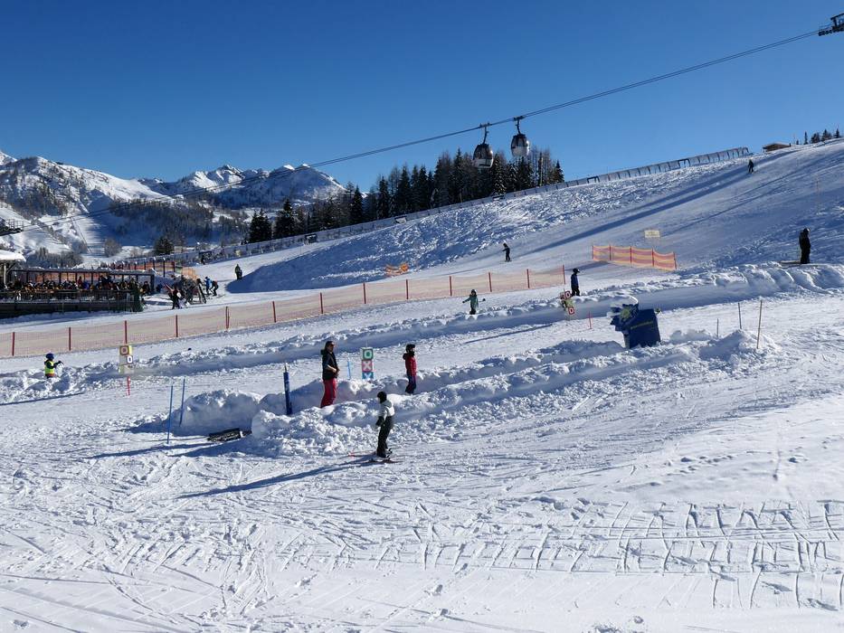 Le jardin des neiges de l'école de ski DieSkischule.at se trouve au col Passo Pramollo, près de Sonnenalpe Nassfeld. Grâce au tapis roulant et aux personnages amusants, l'apprentissage devient facile.