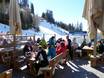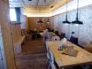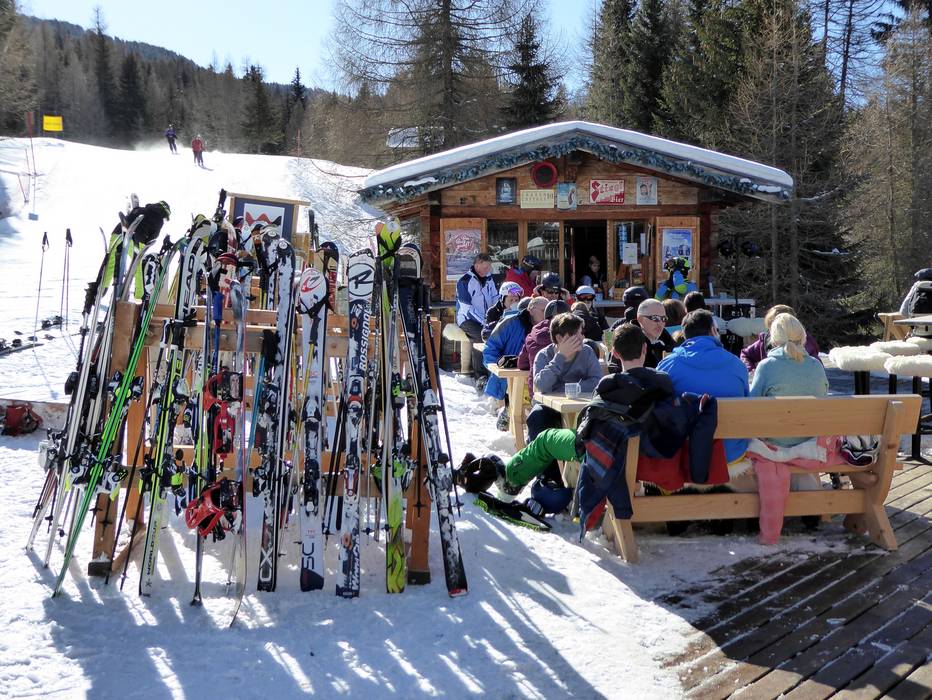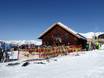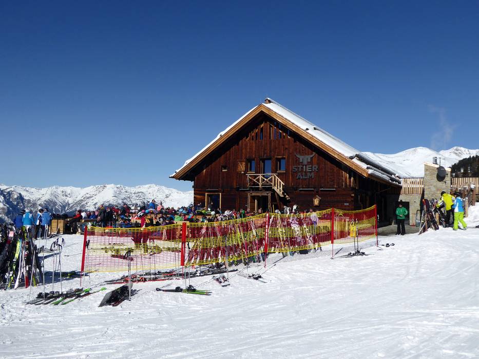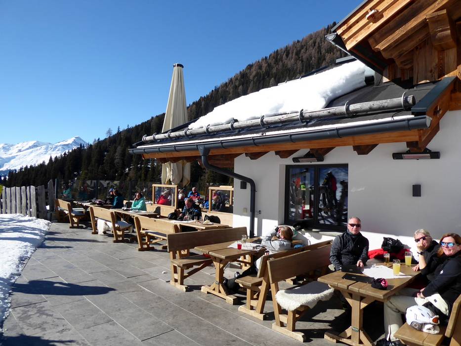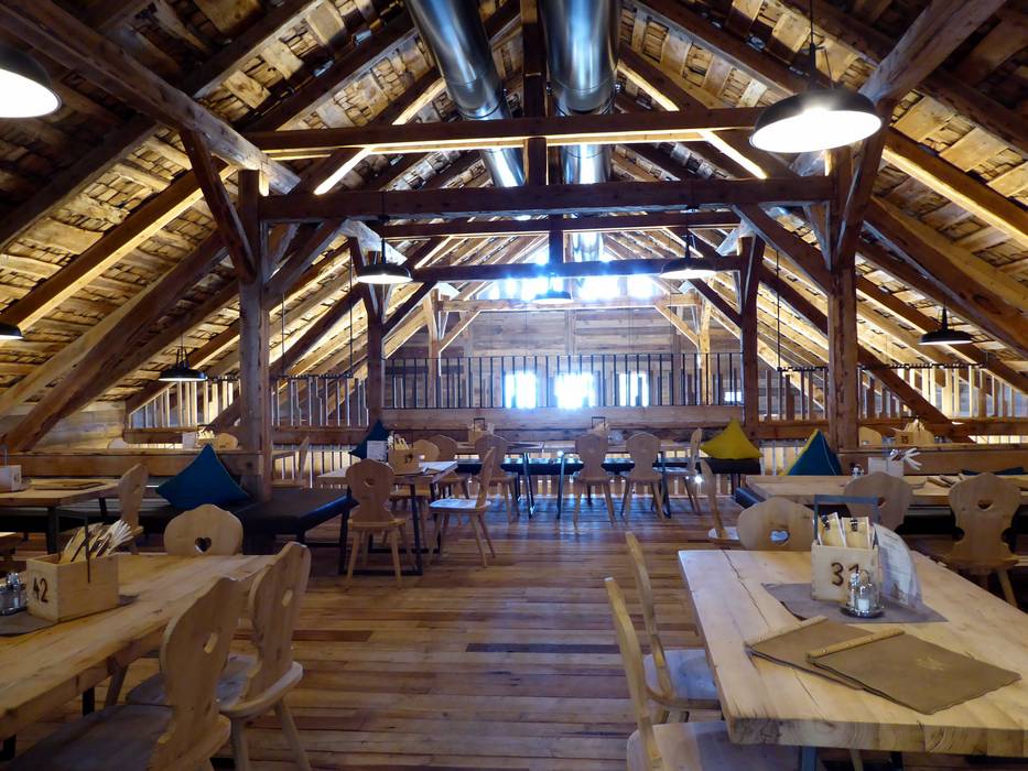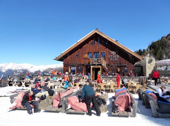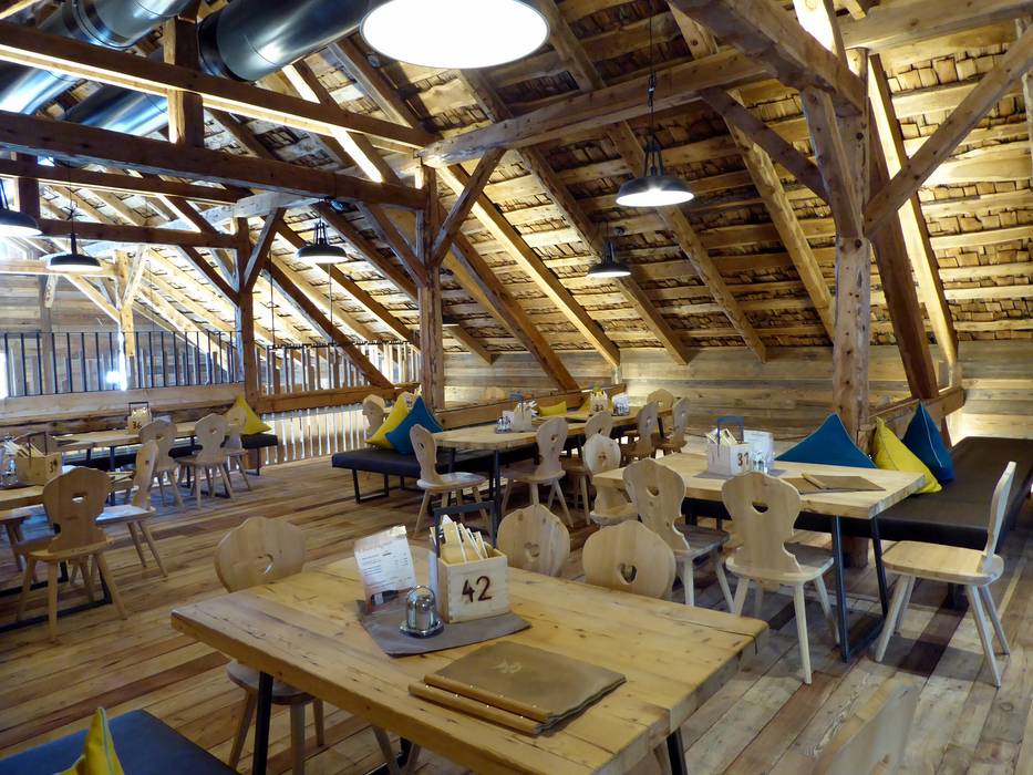 Malgré la reconstruction, le caractère rustique et traditionnel de la cabane a été préservé. Le restaurant avec service dispose de deux étages ainsi que d'une grande terrasse ensoleillée. Le Zirbenstüberl confortable offre un lieu de retraite. L'ambiance unique invite non seulement à une courte pause déjeuner. Il est également possible d'enlever ses chaussures de ski et de se détendre en chaussons. Une salle dédiée avec chauffe-chaussures de ski est à disposition à cet effet.