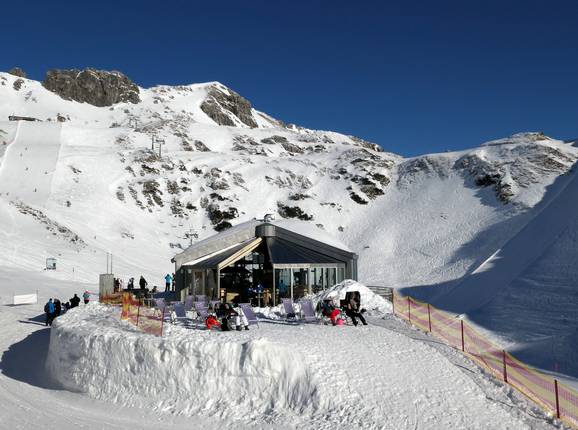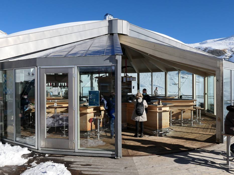 Le bar panoramique moderne en verre est depuis des années l’un des endroits préférés des visiteurs. Ici, de délicieuses petites spécialités et des boissons sont servies dans une ambiance conviviale d’après-ski.