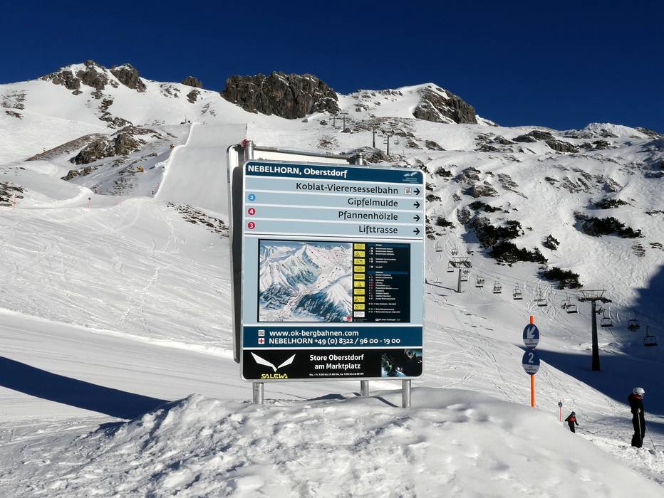 Indications de directions (plans, panneaux informatifs, signalisation) et sécurité sur le domaine skiable Nebelhorn – Oberstdorf