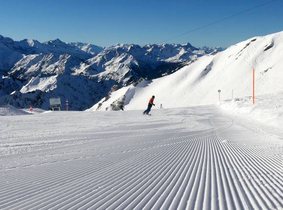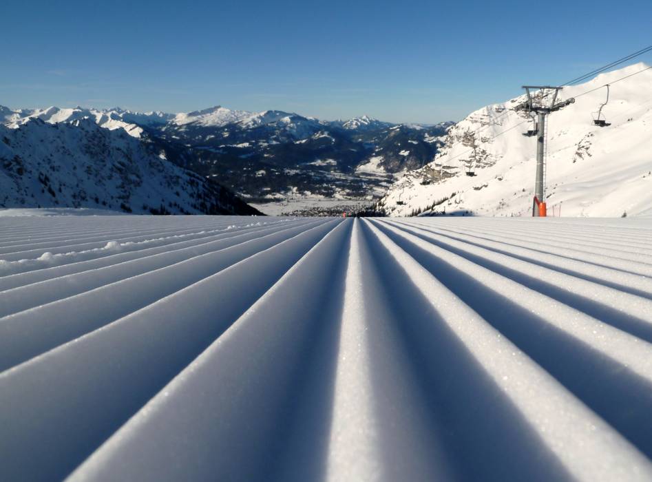 Les pistes du Nebelhorn sont préparées chaque jour avec beaucoup d’engagement pour garantir des conditions optimales. Grâce à la mesure de l’épaisseur de neige assistée par satellite, les dameuses répartissent la neige de manière optimale et les zones avec peu de neige sont immédiatement détectées.