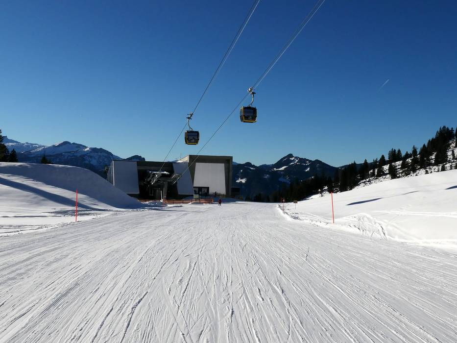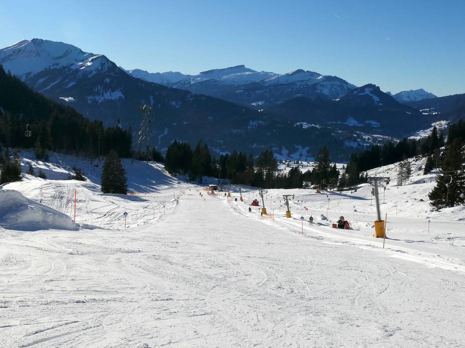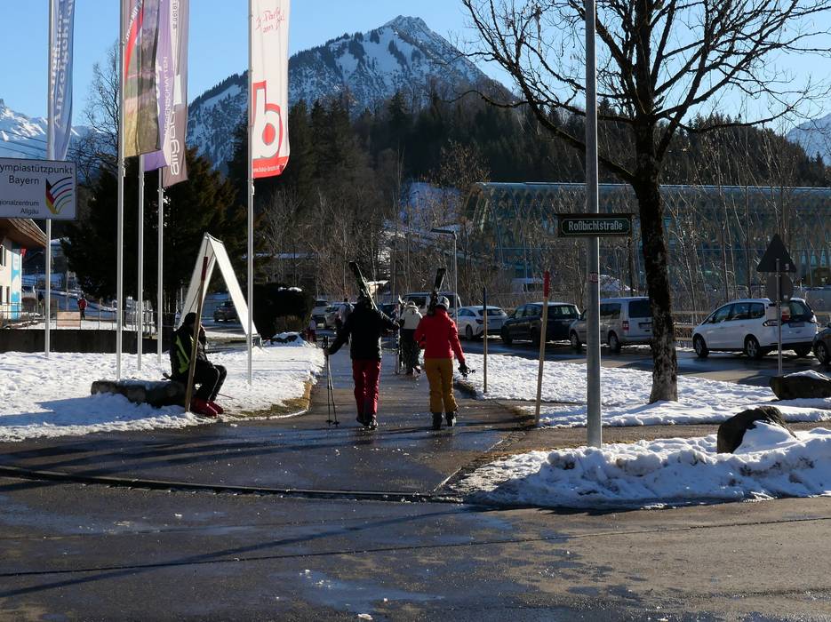 Descente enneigée jusqu'aux abords du village d'Oberstdorf. De là, courte marche à pied (200 m) jusqu'à la station inférieure du téléphérique du Nebelhorn.