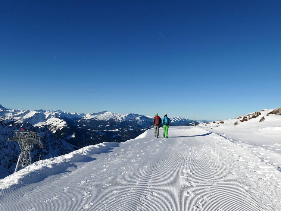 Piste de difficulté moyenne avec un panorama magnifique au télésiège Koblatbahn