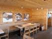 La cabane de ski rustique et authentique propose à midi des plats classiques et de petites spécialités en libre-service. Un plaisir de s’arrêter avec une grande terrasse ensoleillée directement au bord de la piste !