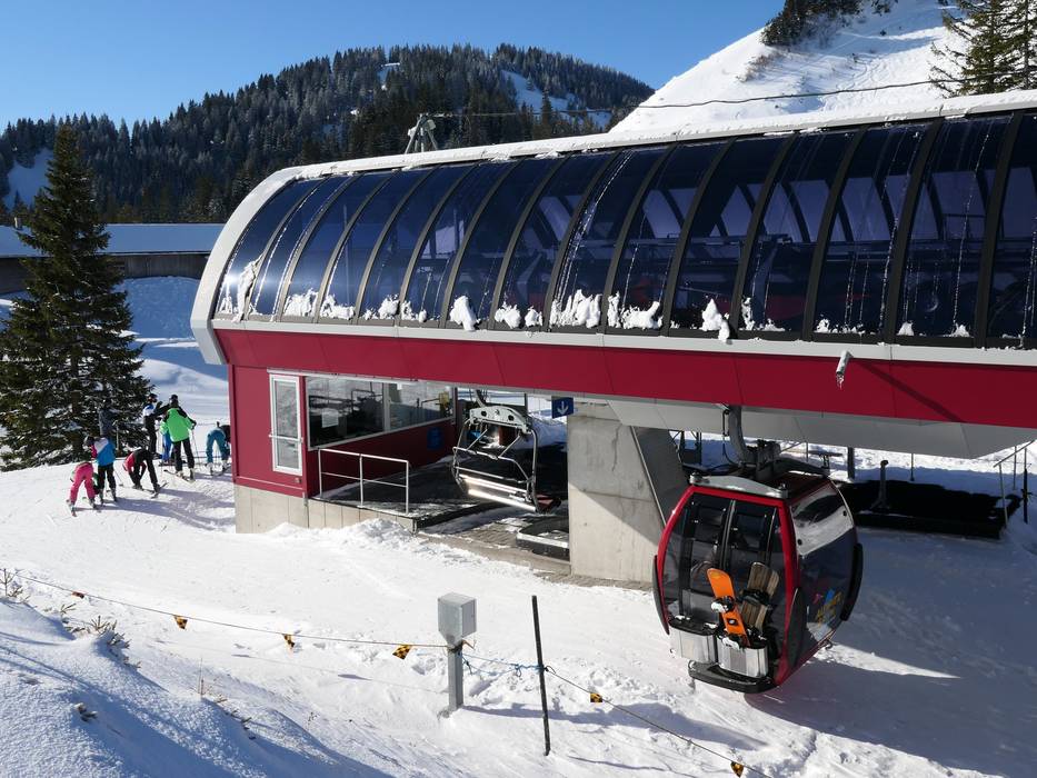 Téléphérique monocâble composé de sièges à 4 places et de cabines à 8 places