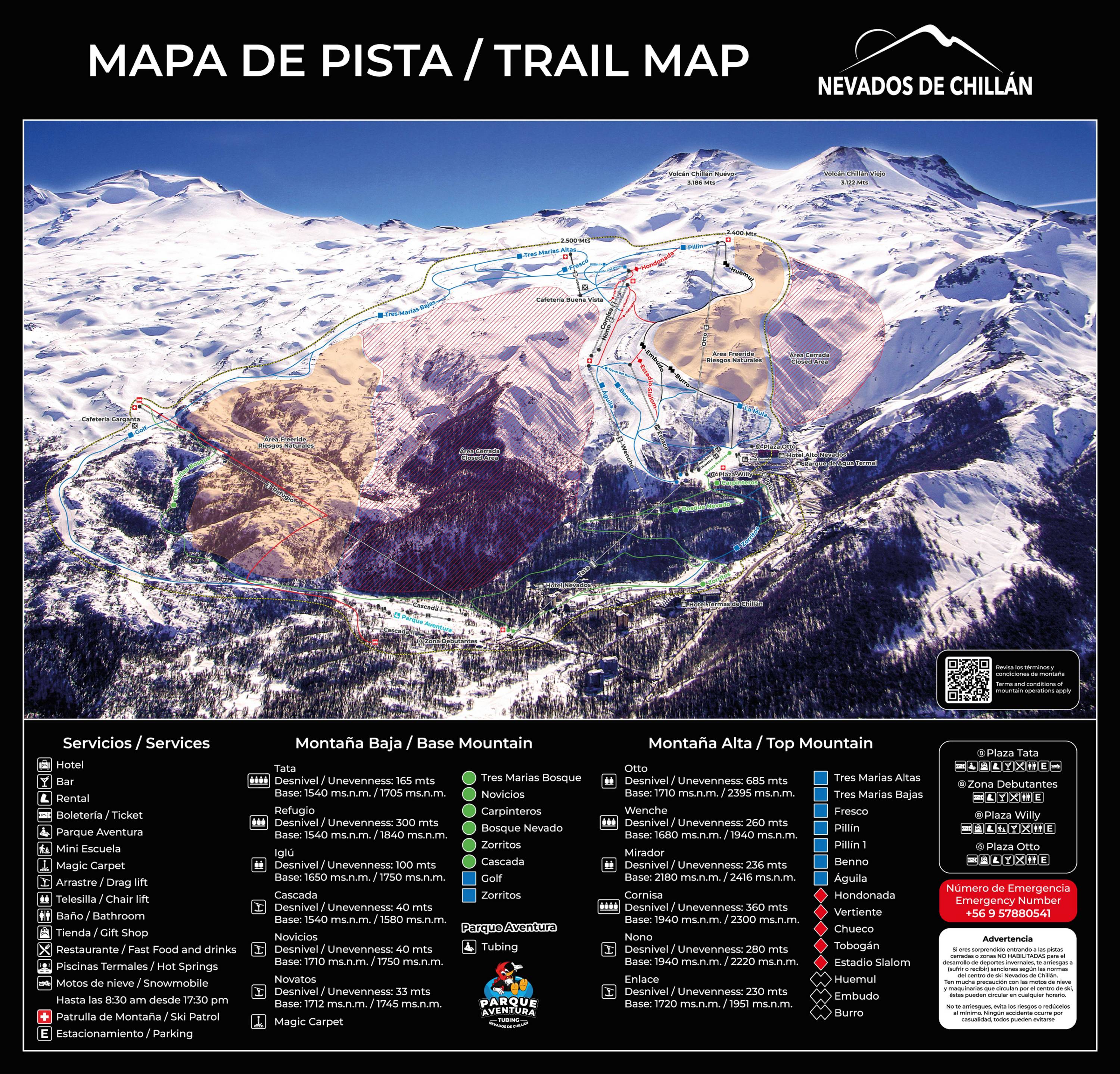 Termas de Chillán (0,1 km), Las Trancas (8 km), Pinto (54 km), Chillán (78 km) Communes près du domaine skiable