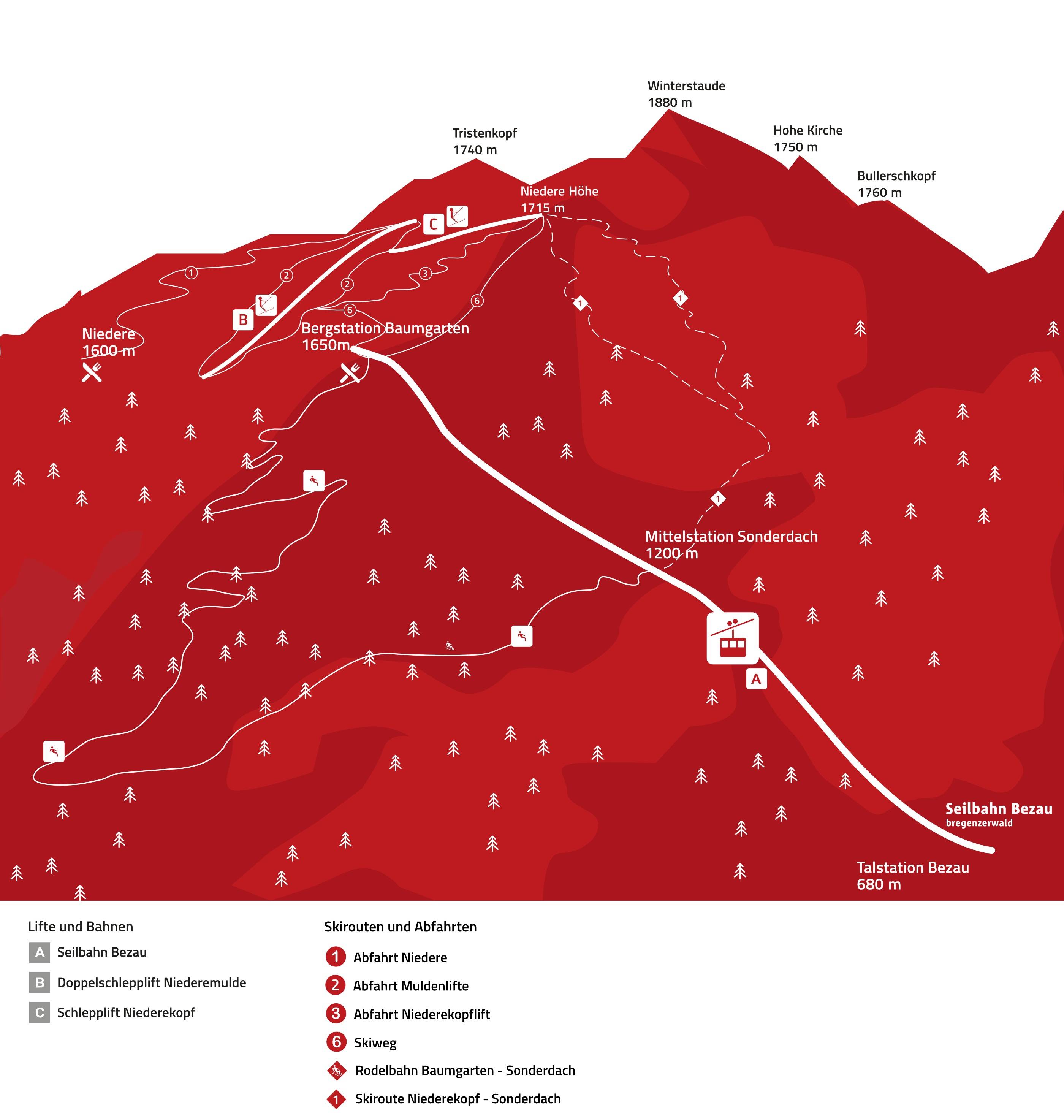 Plan des pistes Skigebiet Niedere Saison 2025/2026