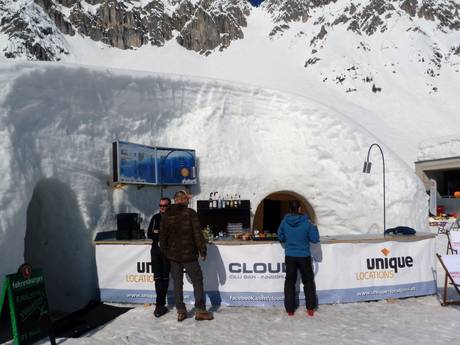 L'Iglubar Cloud9 est la plus grande arène événementielle en igloo de neige des Alpes. Deux bars invitent à déguster des cocktails et des snacks. Par beau temps, vous pouvez profiter du soleil dans un transat.