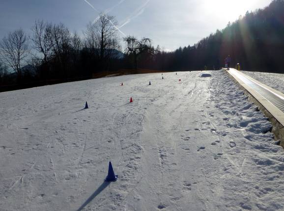 Il y a un espace d'entraînement au-dessus de la station de départ du télésiège 4 places, équipé d'un téléski à corde et de deux tapis roulants. La zone d'entraînement est accessible directement depuis le grand parking P4. Sur la montagne, le téléski Idealhanglift est recommandé pour les débutants. La descente vers la vallée n'est pas conseillée aux débutants. Cependant, il est également possible de redescendre dans la vallée avec le télésiège 4 places. Des cours de ski sont également disponibles en soirée.