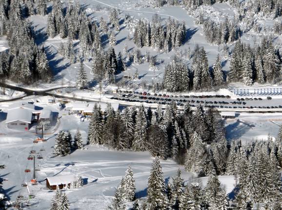 Oberjoch est facilement accessible depuis l'autoroute 7 Ulm-Füssen via la sortie Oy-Mittelberg. Depuis la sortie d'autoroute, il faut parcourir environ 20 km (environ 15 minutes) sur la route nationale 310 bien aménagée pour rejoindre Oberjoch. Les premiers parkings à la Iselerbahn sont payants. En continuant sur le col en direction du Tannheimer Tal, vous trouverez des parkings gratuits aux départs de la Wiedhagbahn et de la Grenzwiesbahn. Au total, un nombre suffisant de places de stationnement est disponible aux points d'accès.