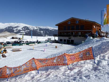 Le jardin des neiges à Cuolm Sura est géré par l'école de ski Mundan et offre beaucoup d'espace pour que les enfants puissent s'exercer. Des tapis roulants, des personnages amusants, un carrousel pour enfants et une piste à vagues sont à disposition.