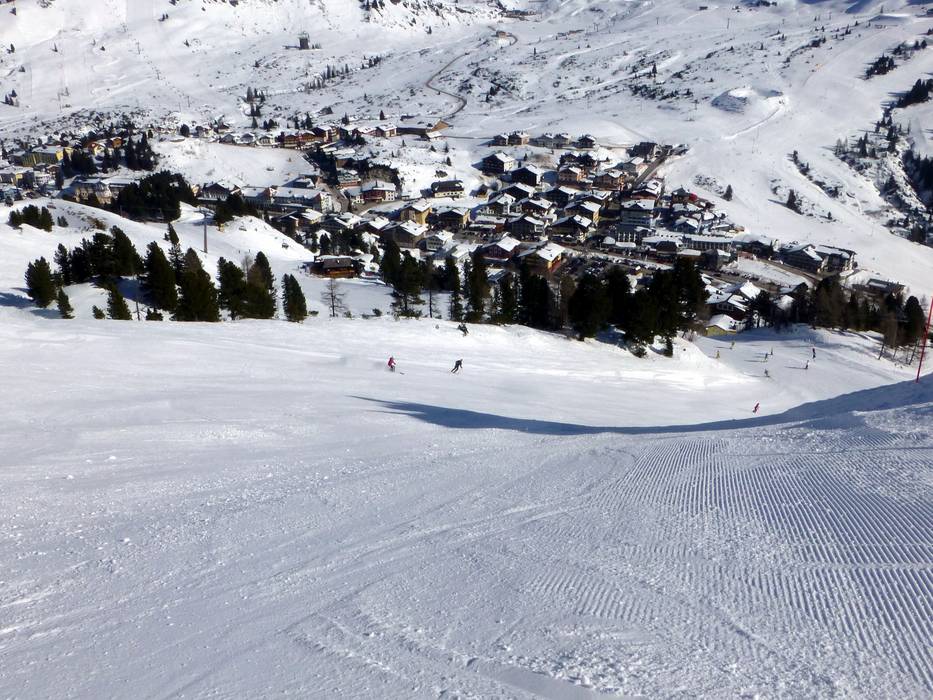 À Obertauern, les amateurs de sports d'hiver trouvent le matin des pistes parfaitement préparées.