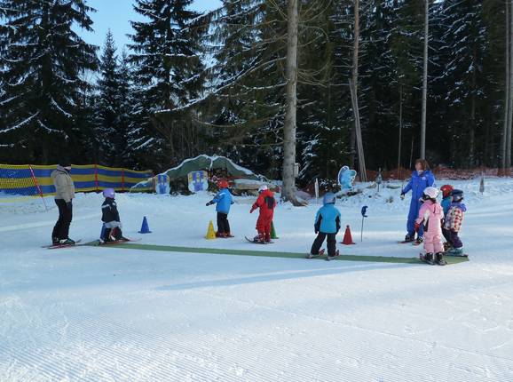 À la station inférieure d'Ochsenkopf Sud se trouve la Fleckiworld de l'école de ski Hottenroth avec deux téléskis à corde. Juhuu l'élan apprend aux petits à skier en s'amusant.