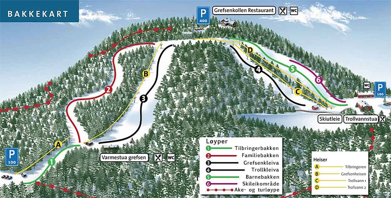 Plan des pistes Oslo Skisenter Grefsenkollen Saison 2024/2025