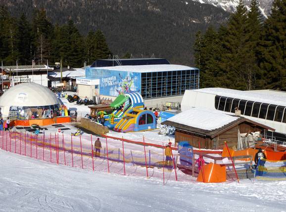 La zone d'apprentissage Snow Kids se trouve à la station de vallée Laghet à Andalo. Ici, il y a un tapis roulant et des obstacles. Un espace idéal pour les premiers virages dans la neige.
