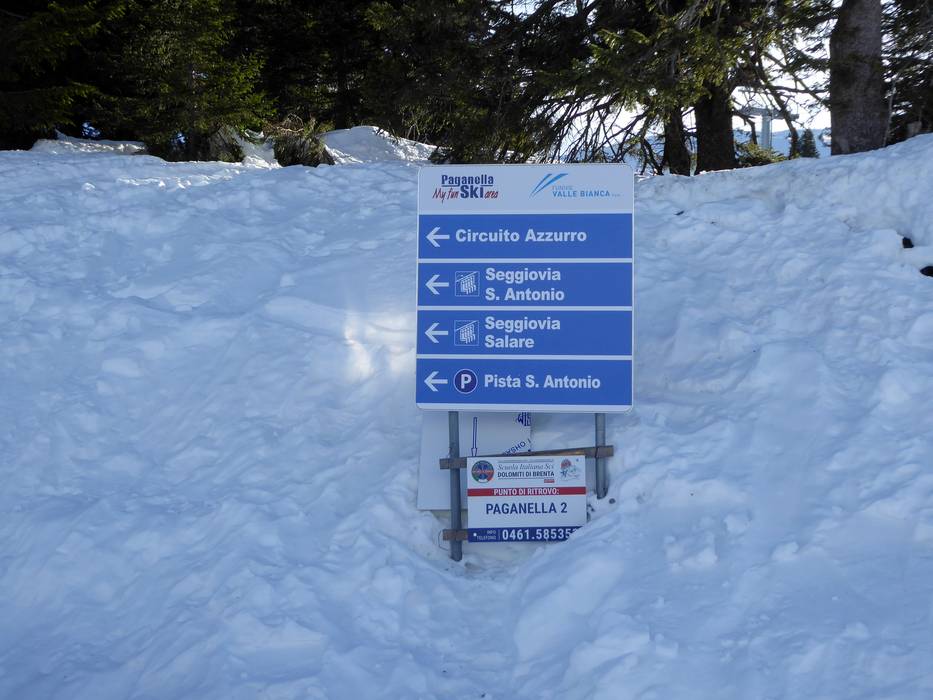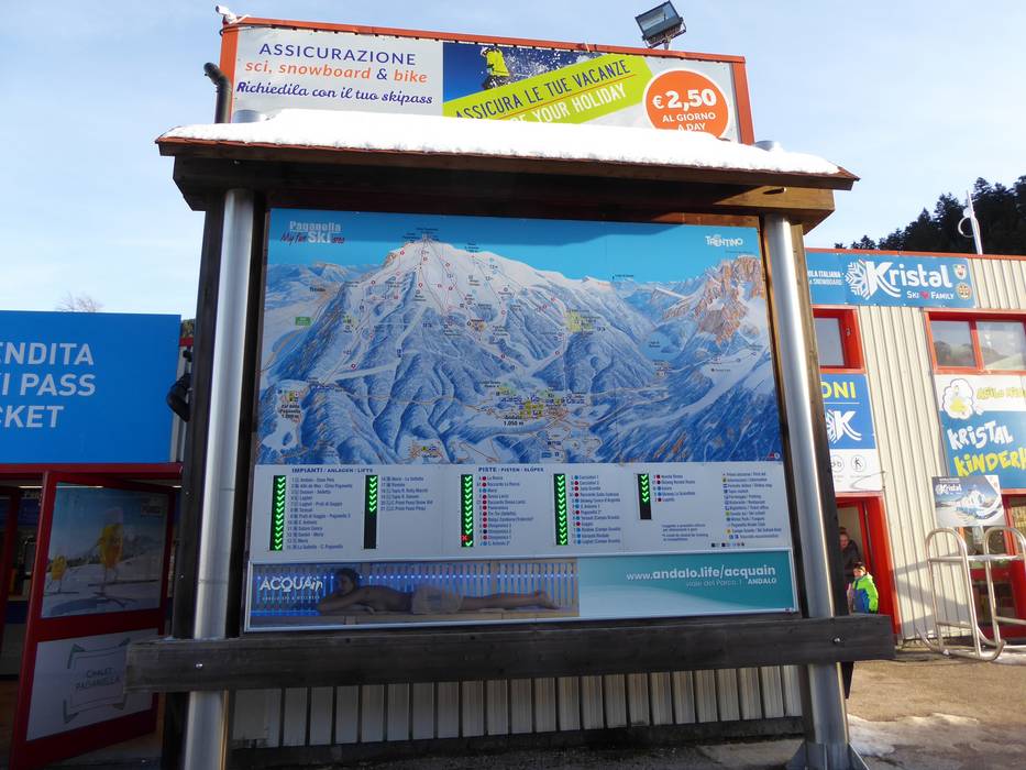 Indications de directions (plans, panneaux informatifs, signalisation) et sécurité sur le domaine skiable Paganella – Andalo