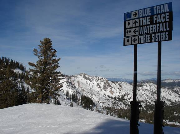 Indications de directions (plans, panneaux informatifs, signalisation) et sécurité sur le domaine skiable Palisades Tahoe