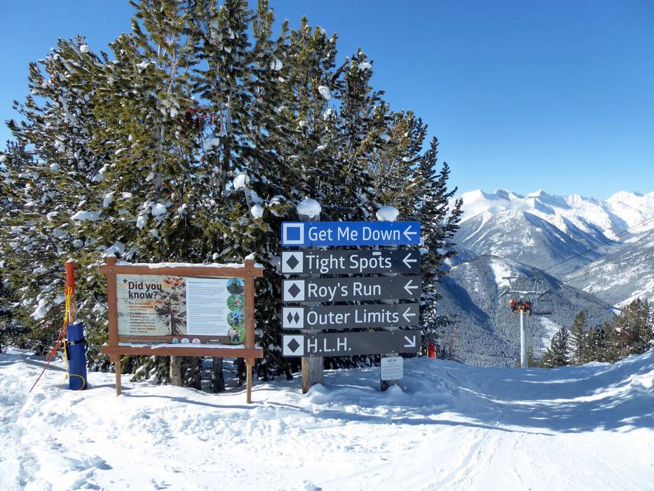 Indications de directions (plans, panneaux informatifs, signalisation) et sécurité sur le domaine skiable Panorama
