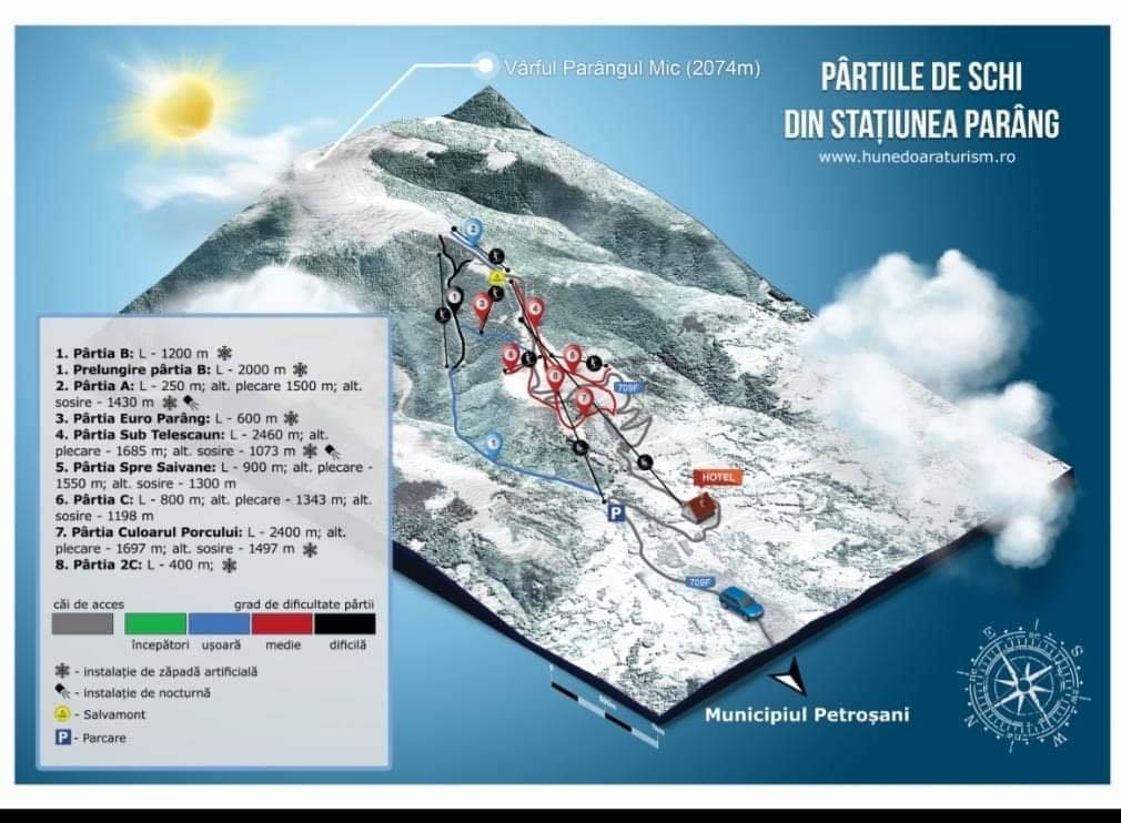 Stațiunea Montană Parâng (0 km), Parâng (0,1 km), Petroșani (9 km) Communes près du domaine skiable