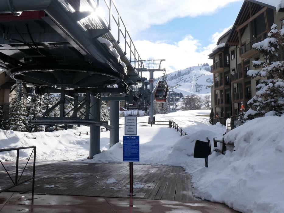 On arrive d’abord au Park City Canyons Village. Depuis le grand parking gratuit, on rejoint confortablement le complexe hôtelier Canyons Village grâce à une télécabine Cabriolet de 8 places, point de départ du domaine skiable.