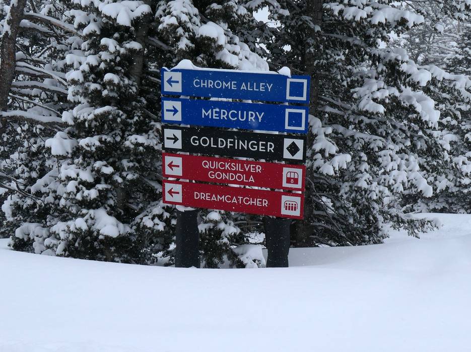 Indications de directions (plans, panneaux informatifs, signalisation) et sécurité sur le domaine skiable Park City