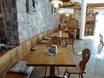Chalet populaire avec une grande terrasse ensoleillée, espace self-service, restaurant et kiosque