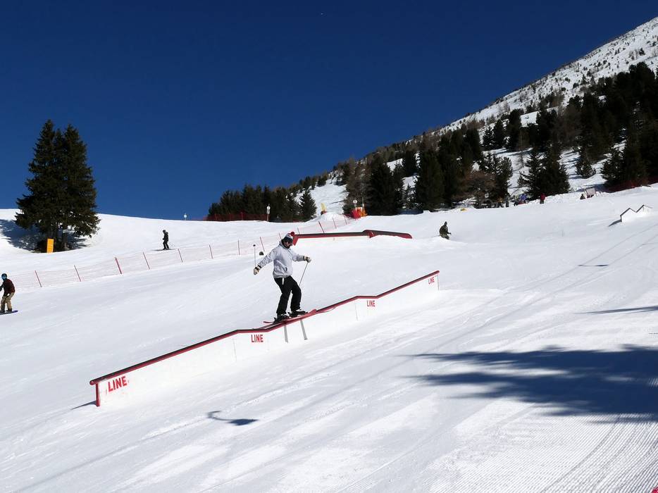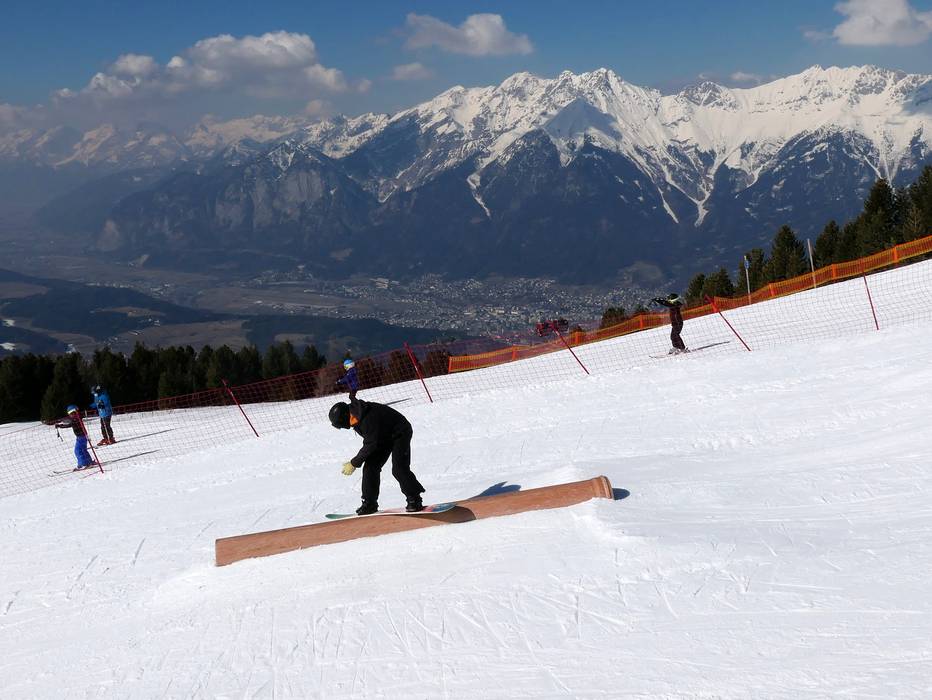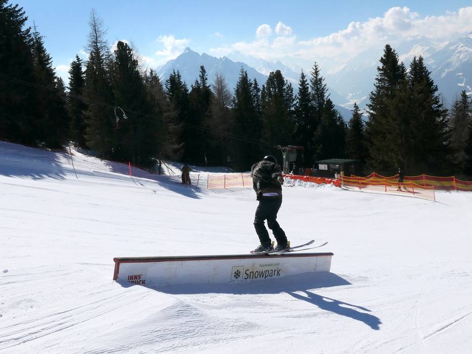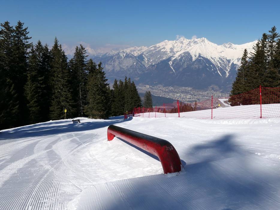 Sur le terrain ensoleillé au-dessus d’Innsbruck, de simples boxes et tubes ainsi que de nombreuses lignes de rails et de tubes plus exigeantes, parfois aussi de petits sauts, attirent les amateurs. Le snowpark est divisé en plusieurs zones. Le cœur du parc se trouve au téléski « Übungslift ».