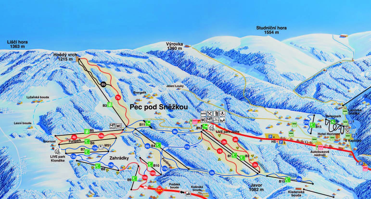 Plan des pistes Černá hora/Pec pod Sněžkou/Černý Důl/Velká Úpa/Svoboda nad Úpou/Malá Úpa Saison 2025/2026