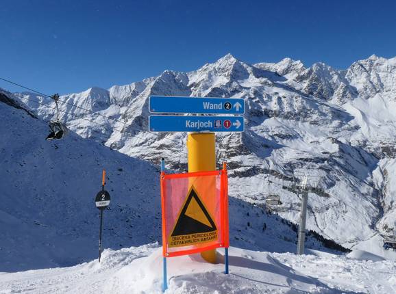 Un grand plan des pistes est affiché aux stations de la vallée et du sommet du Grünbodenexpress. D'autres panneaux d'orientation se trouvent sur les pistes. Les pistes sont très bien sécurisées par des filets de protection. Les intersections sont très bien signalées. Le niveau actuel d'alerte aux avalanches est affiché.