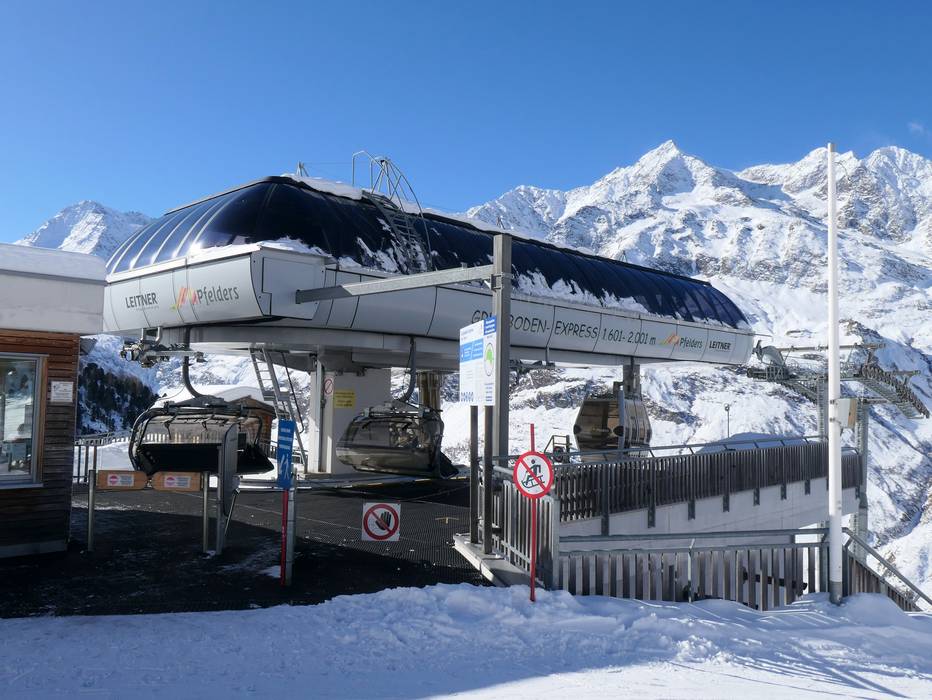 Téléphérique monocâble composé de sièges à 6 places et de cabines à 8 places avec sièges chauffants